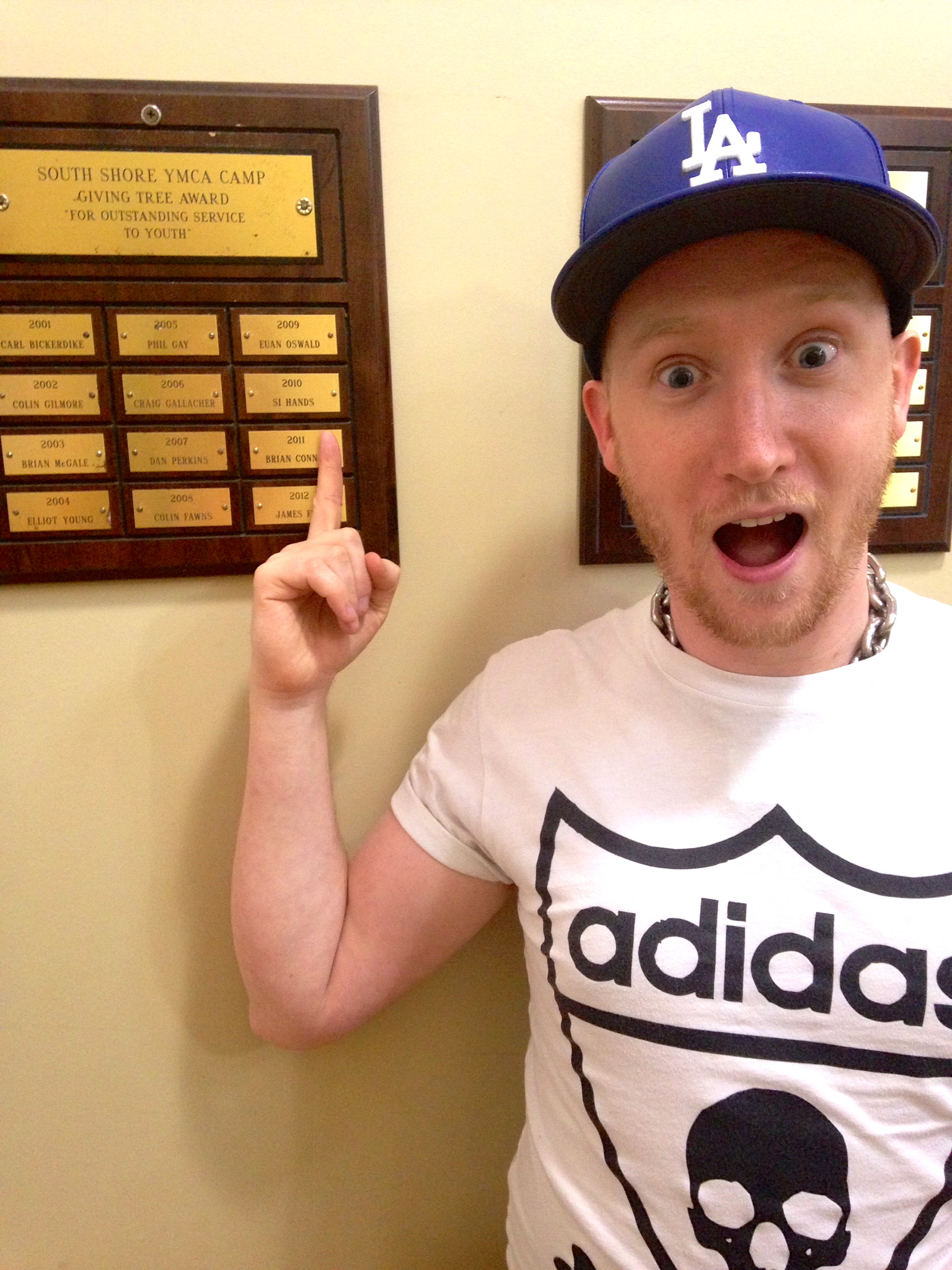 After being a counselor, Si used his computer, film, photography, and art skills to help camp as the Media Director. If you have ever looked at a map of camp or played the frisbee golf course, you will be familiar with his work. In 2010, Si won the Giving Tree Award for Camp Burgess. The highest honor a staff member can receive, the Giving Tree Award is based on the Shel Silverstein book of the same name and presented for outstanding service to youth. Here’s Si posing next to his name on Friday.